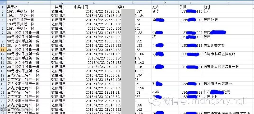 芒市盈黎商贸有限公司盈黎手抓饭前几天的大转盘活动已结束,现公布部分幸运粉丝名单