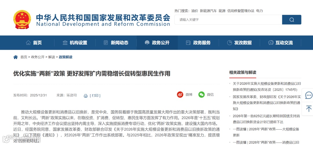 近日,国家发展改革委、财政部印发《关于2026年实施大规模设备更新和消费品以旧换新政策的通知》,明确2026年“两新”政策的支持范围、补贴标准和工作要求。《通知》中商用车部分:继续实施汽车报废更新和汽车置换更新补贴;在老旧营运货车报废更新补贴中,优先支持更新为电动货车。