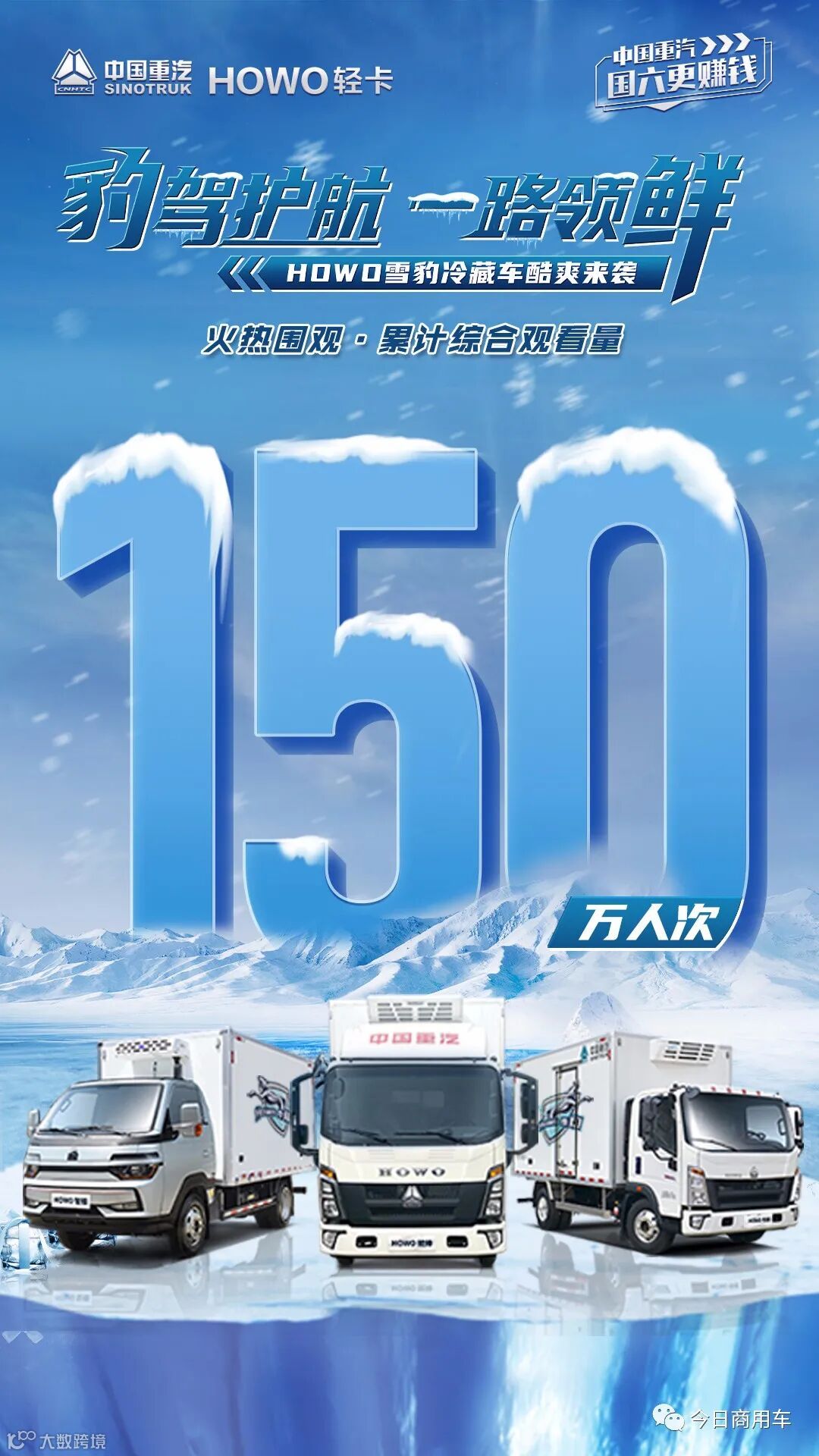 此次直播活动,在智慧重汽APP、中国重汽HOWO轻卡短视频官方账号、今日商用车大直播、星宇卡车帝短视频账号、卡车之友网、中国卡车信息网、润鼎商用车、智慧重汽、重汽视频号、商车邦等多个平台联合播出。直播总浏览量高达150万人次,百万粉丝齐聚云端,共同探索HOWO雪豹冷藏车的保鲜奥秘。
