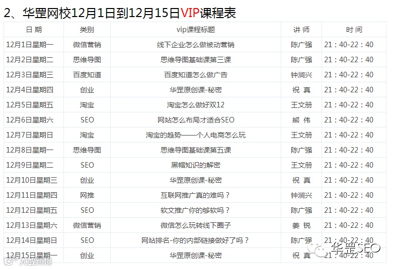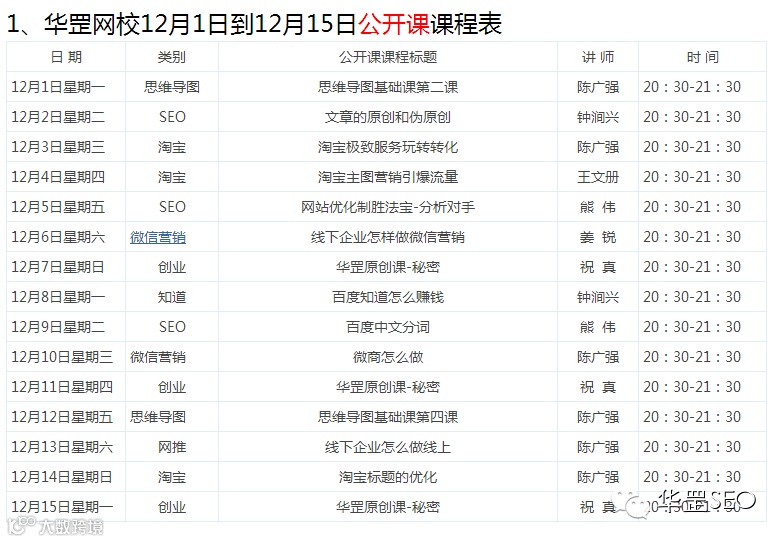 华罡网校12月1日到12月15日课程预告
