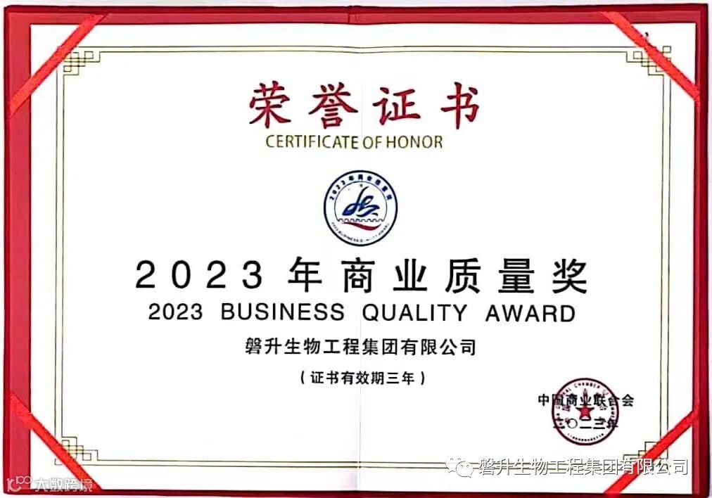 为全面贯彻党的二十大精神和落实《质量强国建设纲要》部署,根据《商业质量奖评审管理办法》(试行),经企业自愿申报、各地商业主管部门和行业协会推荐,商业质量奖评审办公室初步形式审查,并依据《卓越绩效评价准则》(GB/Z19580—2012)和《卓越绩效评价准则实施指南》(GB/Z19579—2012)等国家标准技术文件,组织专家进行评审及获奖名单公示,决定授予磐升生物工程集团有限公司等98家单位“十六届商业质量奖”。