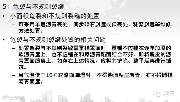 高速公路沥青路面日常养护包括:巡查与检测,清扫和排水,排障和清理,除雪和防冻等内容。而路面裂缝也是公路最主要的质量通病之一,下面的内容对路面裂缝的原因进行了分析,同时对维修修补方法进行了逐一介绍,赶紧看看吧。