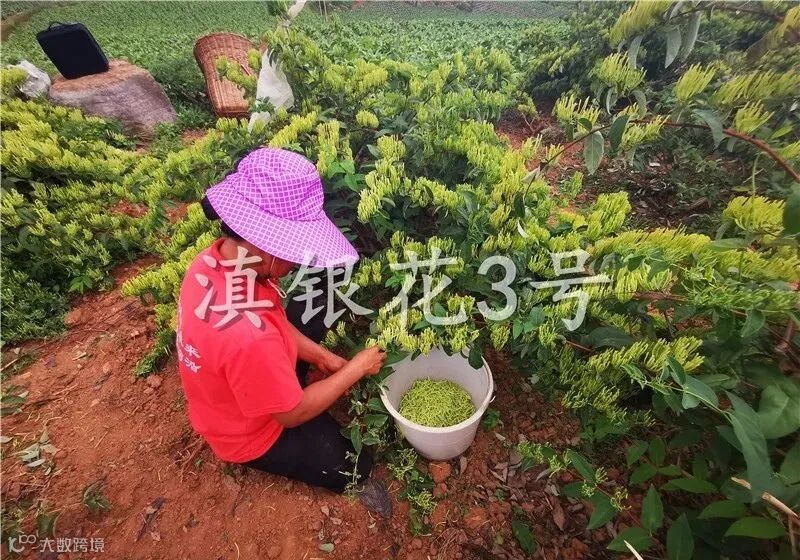 二、 采摘方便成本低:滇银花3号节间短,叶片下垂,花蕾大,花蕾集中外露,集中簇生于叶腋和枝顶,人工采摘方便,可大把采收,每人每天可采鲜花100公斤左右(晒成干花20公斤),采摘工效提高3-5倍以上,大大节省了人工采摘成本,提高了种植的收益。