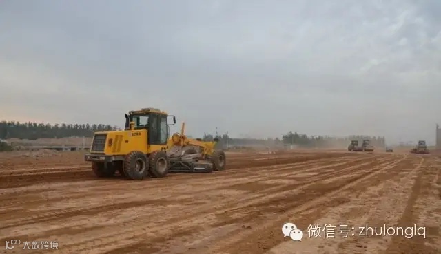 高填方路基施工前,必须进行填筑段试验。作为试验段,控制长度大于 200m。在试验过程中,选择合适的设备类型以及各种参数,进行反复试验。确定工程中的各种设备和参数,便于施工阶段的施工。在施工前必须仔细勘察填方区域,了解其地质和土质情况,尤其是特殊地基,应根据相关规范,对地基进行处理。可先将地面的树木和腐殖质土清除,并排除积水,晾晒、平整,然后采用压路机碾压,直到压实度达到规范要求。运料前,挖方区的填料经试验合格后使用。采用挖掘机或装载机装车,自卸汽车运输到填方区。汽车卸料时,安排专人指挥,按每层 30cm 的松铺厚度计算卸料密度,进行摊铺和整平阶段。然后采用自重 30t 以上大型履带式推土机初步摊平,并在初平后,进行来回碾压,完成初步压实,以利于平地机平整。每层初步平整完成后,再用平地机进行精平,并形成一定的路拱以利于排水。对机械无法到达的边角处,人工找平。