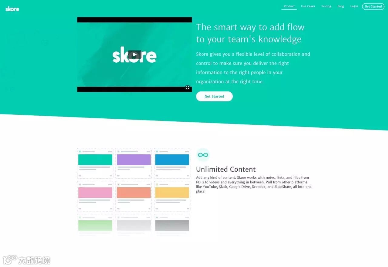 在Skore 的产品页面中,每一个部分都有使用到绿色的元素。重复的绿色元素不仅创建出可供用户快速识别的模式,它也让用户能够快速明白哪些因素更加重要。通常,我们解释视觉层次的时候,会用不同大小、粗细的字体来阐述信息层次和结构,但是不同强度的色彩,同样可以实现层次的划分。