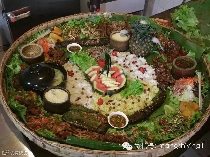 我们所有都是景颇特色,手抓饭,绿叶宴等等,应有尽有!