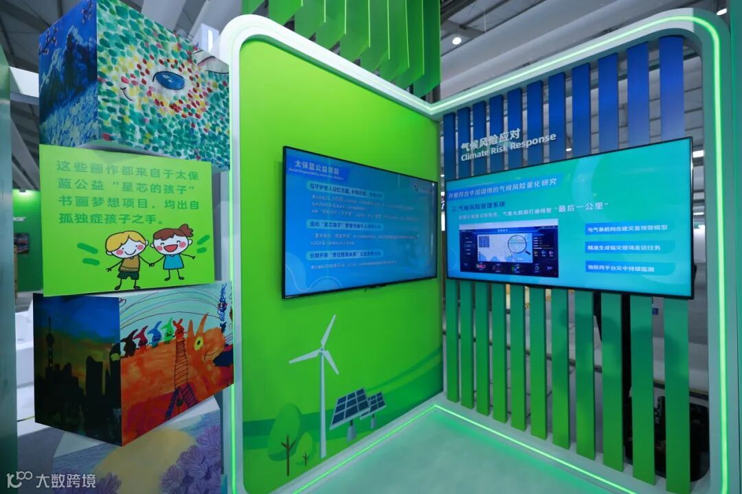 聚焦“发挥保险力量,助力可持续未来”主线,中国太保连续第二年在领导者大会现场设立展厅,展厅以清新的绿色和深邃的太保蓝为主色调,全方位呈现全球化布局、绿色实践、社会公益等领域的创新成果,凭借鲜明的主题、丰富的内容与创新的呈现形式,再一次成为展会关注焦点和打卡热点。