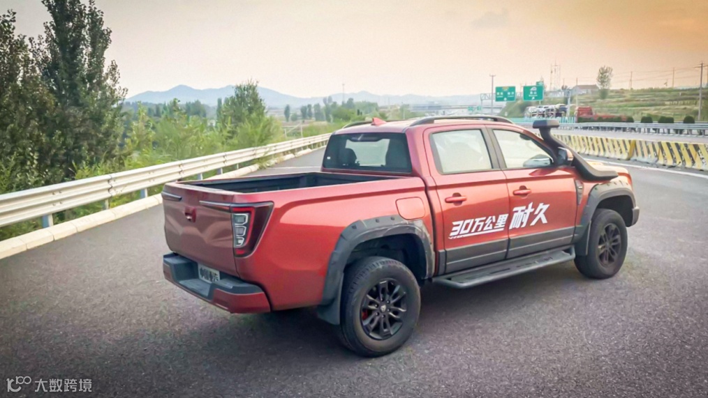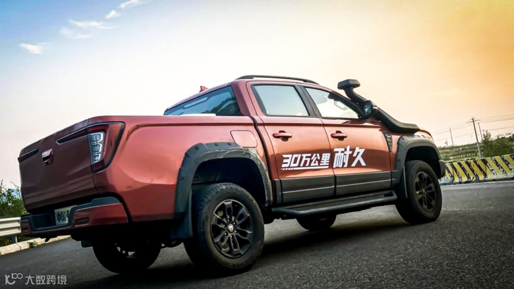 外观呈现立体、奔放的美式皮卡造型风格,前脸高度整合,格栅和大灯采用一体式设计,强化车头的视觉冲击力,整车行驶中远观犹如猛虎出山、蛟龙入海,凌厉霸道。