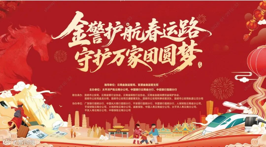 为深入贯彻落实党的二十大和二十届历次全会精神以及中央金融工作会议精神,践行金融工作的人民性与政治性,在云南金融监管局及官渡监管支局的指导下,由中国太保产险云南分公司、中国银行云南省分行、中信银行昆明分行牵头,携手省内多家金融机构,联合昆明市公安局、云南省保险行业协会等,于2026年2月2日至11日在昆明及省内州市各交通枢纽同步开展“金警护航春运路,守护万家团圆梦”金融教育宣传活动。活动以交通网络为载体,聚焦春运出行群体,推动金融安全与旅途保障深度融合,切实筑牢群众出行安全防线。