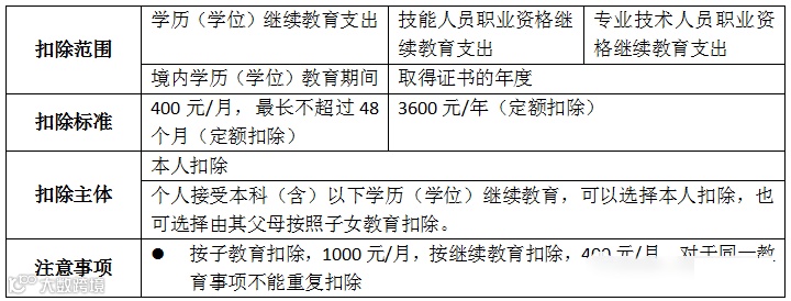 七项专项附加扣除要点