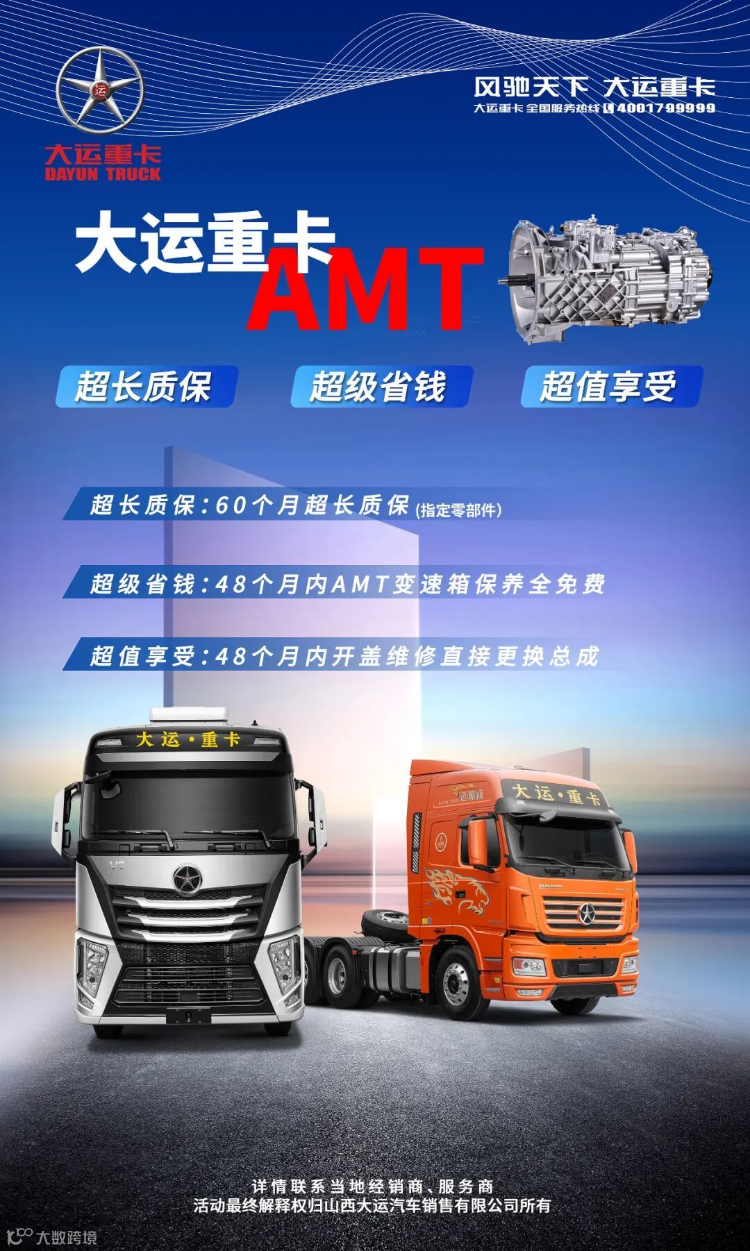 政策,有理由相信大运AMT重卡一定能赢得消费者的青睐,在中国AMT重卡市场中取得不菲的成绩。