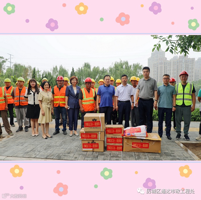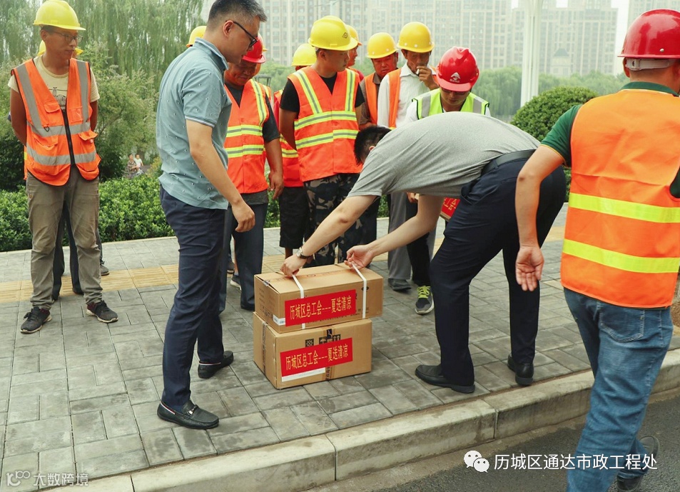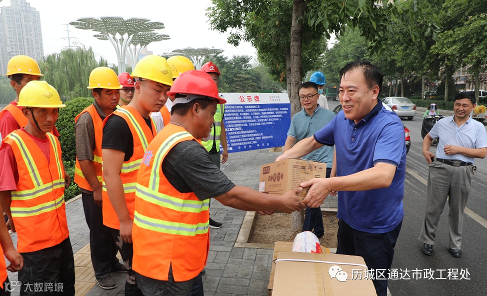 在现场,区总工会党组书记、常务副主席王锐,区交通局局长孙玉国肯定了一线施工工人的辛苦付出并强调:进入盛夏以来,一线工人们冒着高温酷暑施工,在抢时间、抢进度的同时,首先要保证工程的安全和质量,同时要考虑到每一名工人,照顾好他们的身体,避免中暑等情况发生。确保建设一线的工人们在酷暑期间安全生产、安全度夏。落实劳动保护措施,保证一线施工人员高温期间的健康安全。