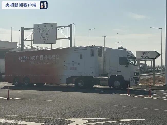 在澳门回归祖国20周年来临之际,中央广播电视总台的豪沃T7H 4K/8K转播车、卫星车、双层大巴等16辆车组成的总台转播车队,通过港珠澳大桥边检口岸,从珠海驶入澳门,经本岛、友谊大桥进入氹仔在抵达东亚体育馆后车辆又分两路前往科学馆总台演播室集群等地,在现场由“最靓的仔“组成最靓的风景线。