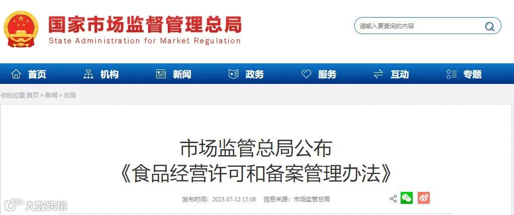 近日,市场监管总局公布《食品经营许可和备案管理办法》(国家市场监督管理总局令第78号),自2023年12月1日起施行。