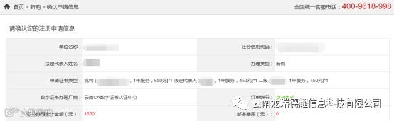 6.订单支付成功后,按照订单中选择的方式联系云南CA领取证书和发票。
