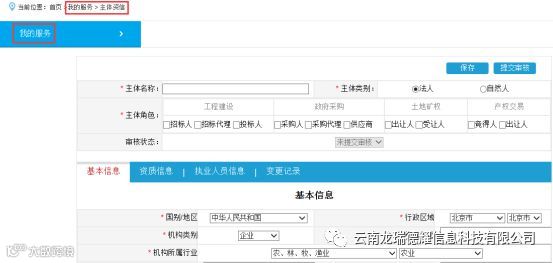 3.登录后,在【我的服务】——【主体资信】中填写信息