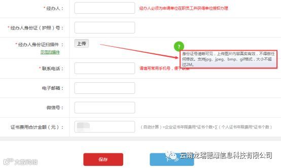 (2)证书信息录入完成之后,需填写经办人信息;