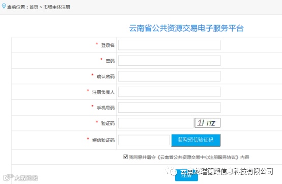 (1)打开网站首页(网址:http://www.ynggzyxx.gov.cn/jyzxggfwpt-home-web),点击右上角【注册】按钮;