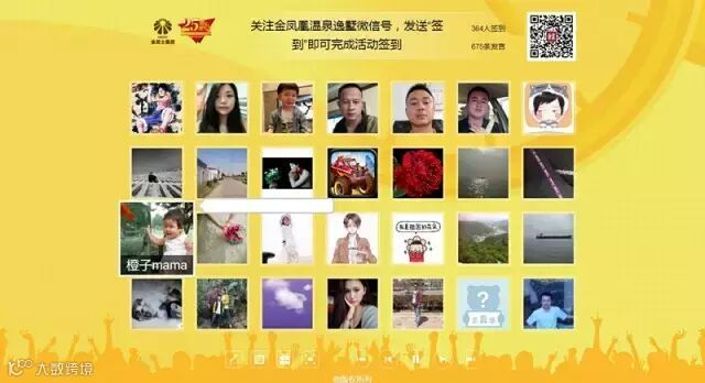观众关注主办方微信公众号,根据提示进行签到。微信大屏幕将同步展示观众微信头像及呢称,现场签到情况一目了然。活动签到结束后,所有签到观众头像自动动态组合成主办方
