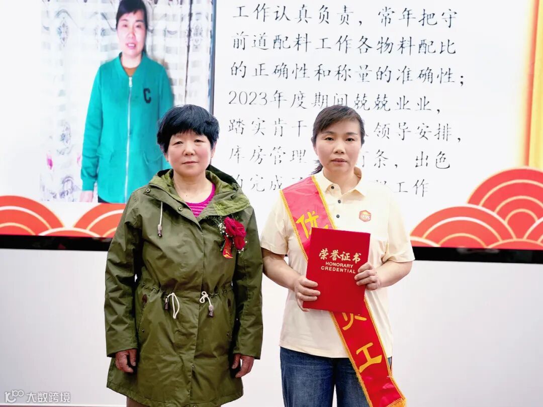 获奖者为生产车间“质量执行官”的胡玉玲和訾福美。他们做事一丝不苟,工作上带领团队把质量把好关,坚持不合格的产品不出厂,为每位消费者的食品安全打造了坚实的基础。