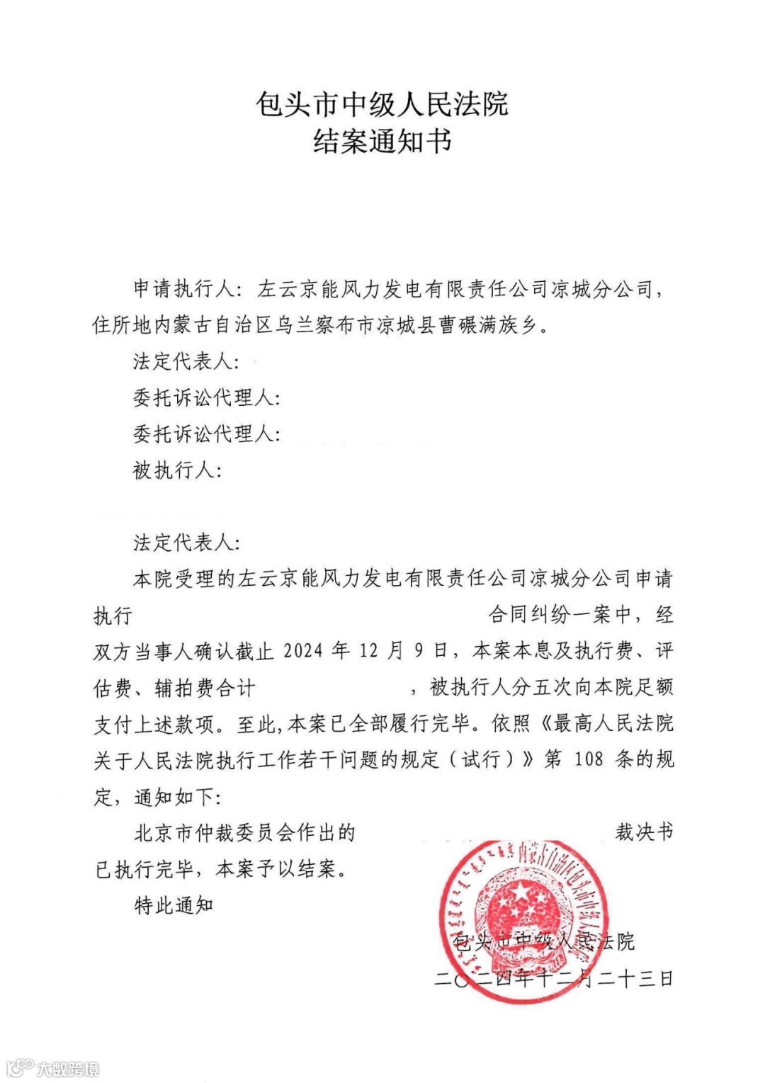 2024年12月24日,随着左云凉城执行案件最后一笔执行款到账,这场历时三年的法律纠纷画上了圆满的句号。这一胜利不仅彰显了法律的威严与公正,更充分体现了广大干部职工履职尽责的坚定决心。