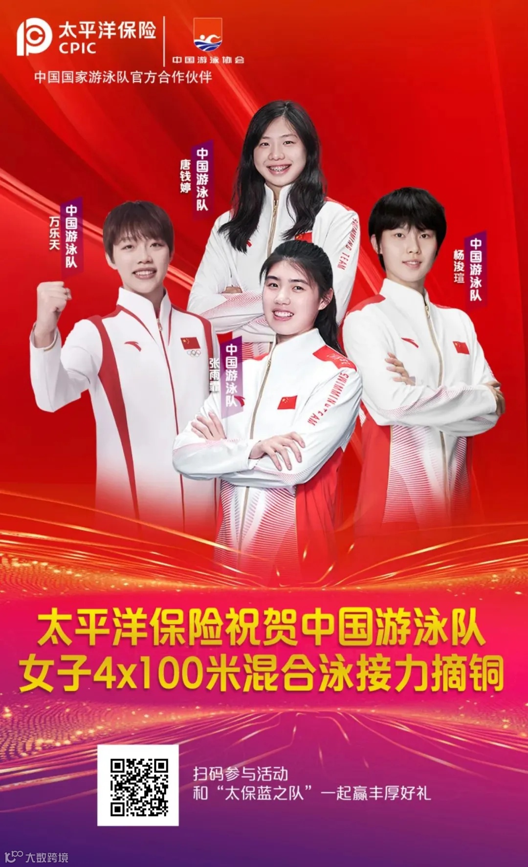 而随着中国游泳队万乐天、唐钱婷、张雨霏、杨浚瑄携手夺得女子4x100米混合泳接力的铜牌,自此,巴黎体育盛会游泳比赛落下帷幕。