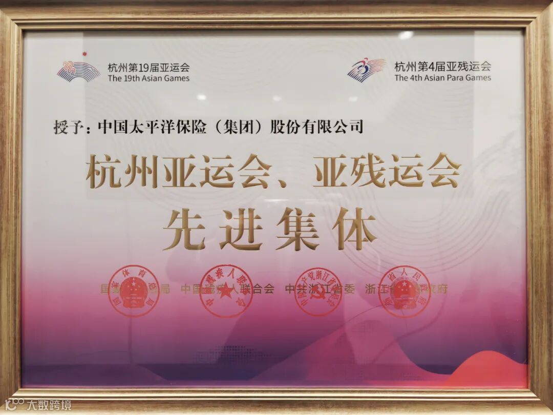 近日,浙江省委、省政府隆重举行杭州亚运会亚残运会总结表彰大会。中国太保被国家体育总局、中国残疾人联合会、中共浙江省委、浙江省政府联合授予“杭州亚运会、亚残运会先进集体”荣誉称号。