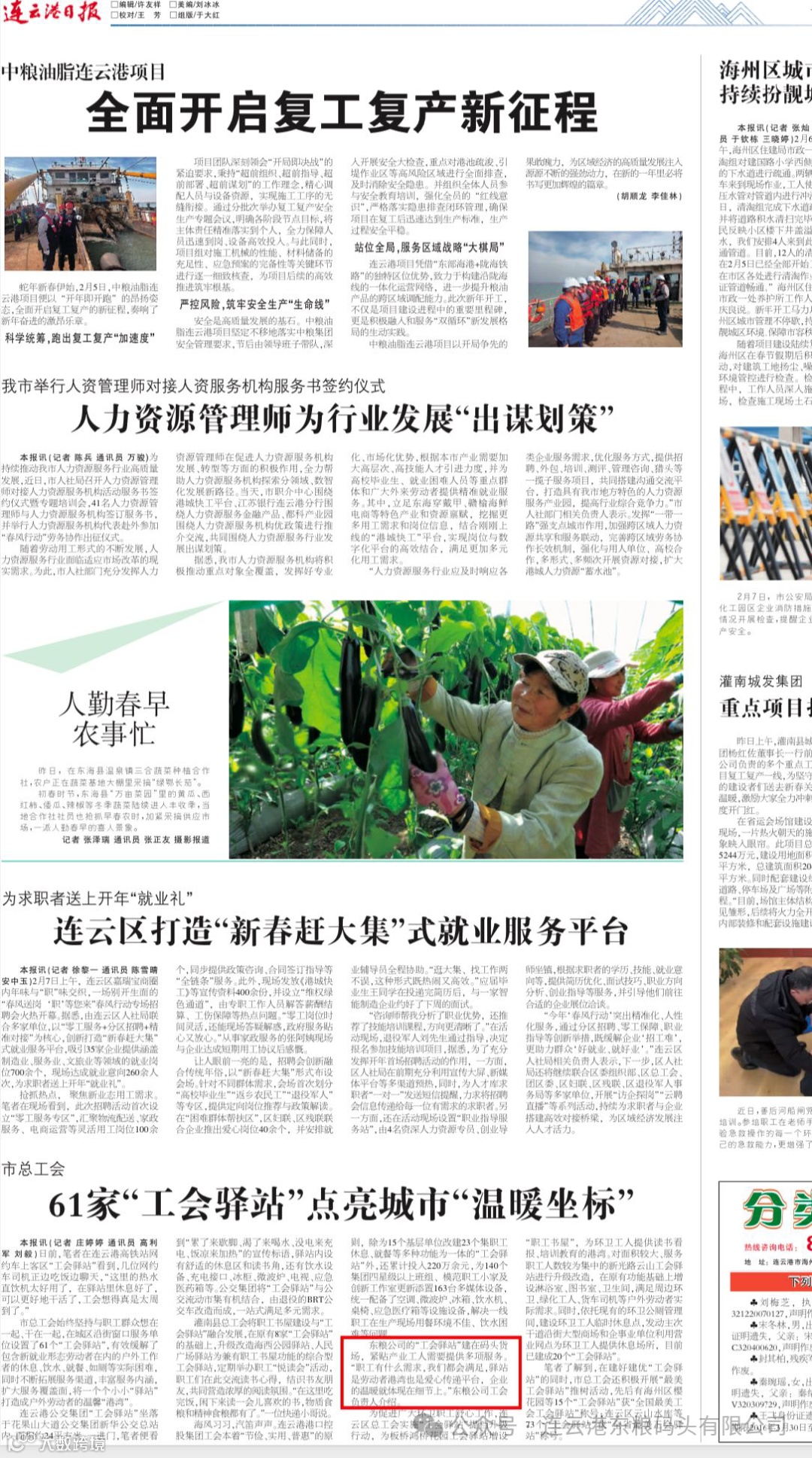 日报》头版头条。东粮公司工会积极参与