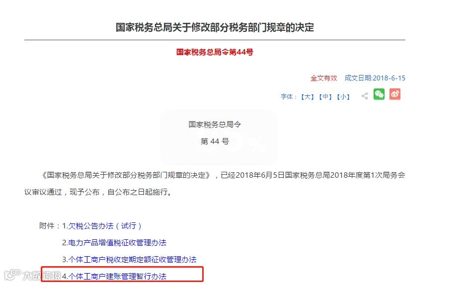 2018年6月15日公布的《国家税务总局关于修改部分税务部门规章的决定》(国家税务总局令第44号)附件4《个体工商户建账管理暂行办法》对个体工商户建账提出了明确要求: