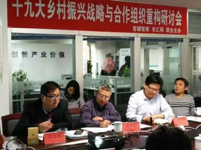 2017年11月5日,首辅智库“十九大乡村振兴战略与合作组织重构”研讨会在农汇网召开,中央编译局陈林,中央党校徐祥临,农民日报徐恒杰,供销总社高明,首辅智库唐海潮等资深三农专家出席此次研讨会,农汇网张志成总裁应邀介绍关于农合资信及盘活闲置农房、发展乡村民宿项目。