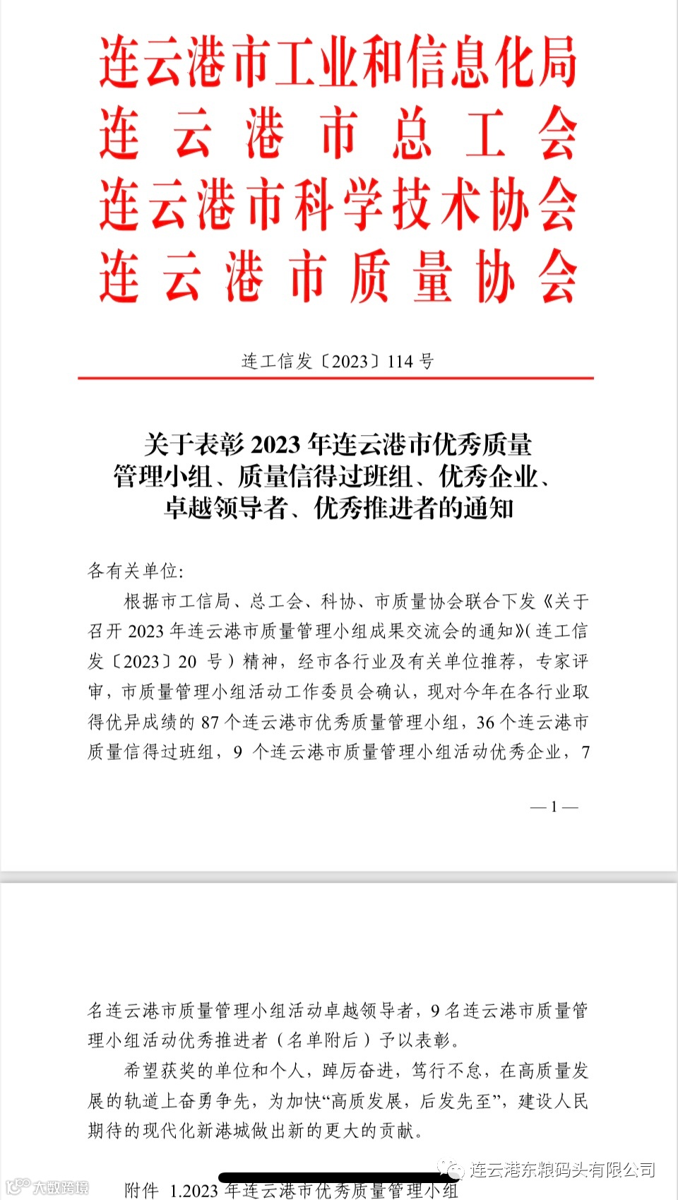 导读:点击上方蓝字关注我们吧日前,东粮公司固机队电工班和操作一班在连云港市工信局、总工会、科协、市质量协会联合召开