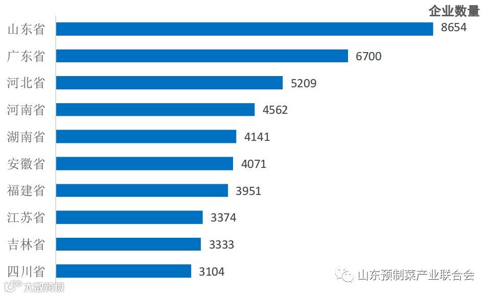 图2-4 预制菜企业数量Top10省份(截至2022年12月31日)(图表数据来自毕马威《2022年中国餐饮企业发展报告》)