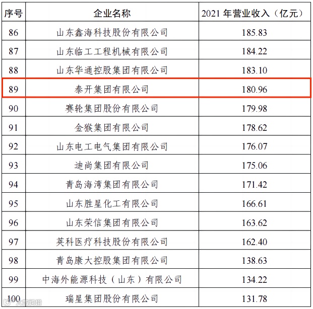 荣誉|泰开集团荣登2022年山东工业百强企业榜单!