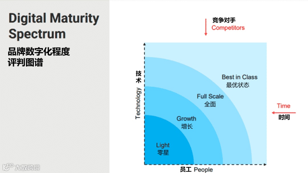 “我认为品牌数字化影响因素很多,不能简单地依据某两个维度来评判”,Lopez表示。但基于员工与技术资产之间的平衡关系,Lopez总结出一个实用的品牌数字化程度判断图谱。