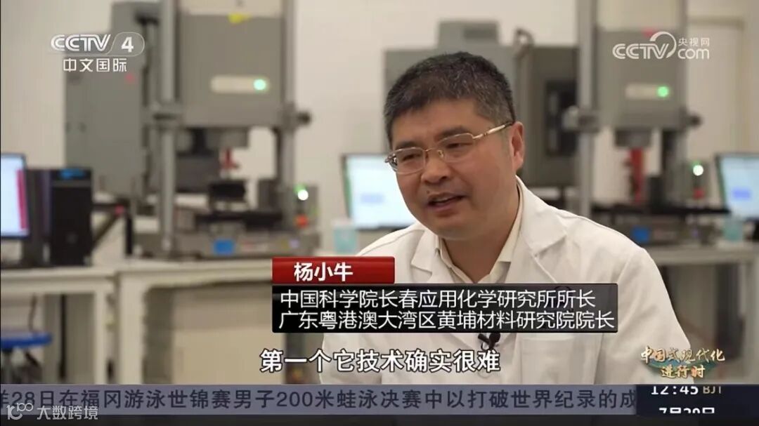 7月29日,中央电视台国际频道(CCTV4)《新征程上看中国·中国式现代化进行时》报道了我院建设的航空轮胎大科学中心,并采访中国科学院长春应化所所长、黄埔材料院院长杨小牛。