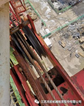 主卷扬钢丝绳排绳混乱,与损坏的钢丝绳放脱槽装置干涉,造成钢丝绳寿命的急剧减少。