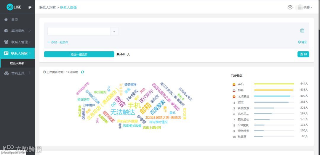 通过SOLIKE的标签分组功能,哪些用户通过什么媒体采取了哪些行为留资且对企业什么方面感兴趣,推广专员可以时时关注,可以帮助推广人员了解用户的具体画像,更重要还能为咨询团队提供个性化话术的