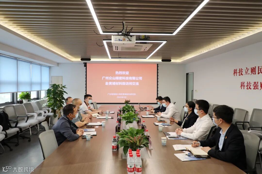 3月31日,广州众山精密科技有限公司(以下简称“众山精密”)总裁陈溢彬,特别顾问马惠民,副总经理郭满平,人资总监尚龙杰一行到黄埔材料院调研交流。黄埔材料院副院长王杰,人力资源部部长罗志明,院企合作部部长刘志斌,行政事务部常务副部长何展辉接待了陈溢彬一行。