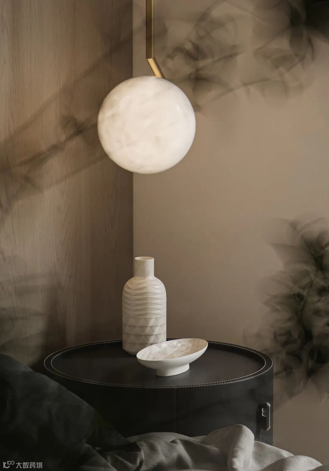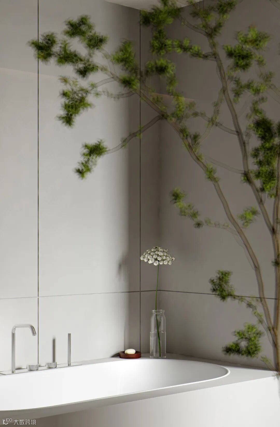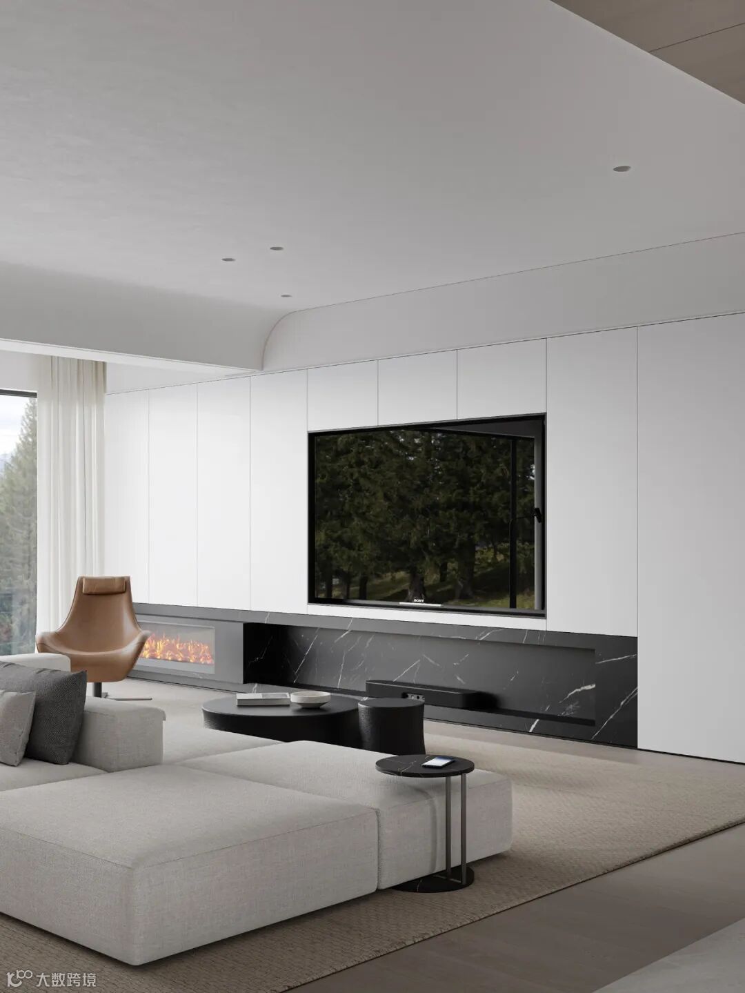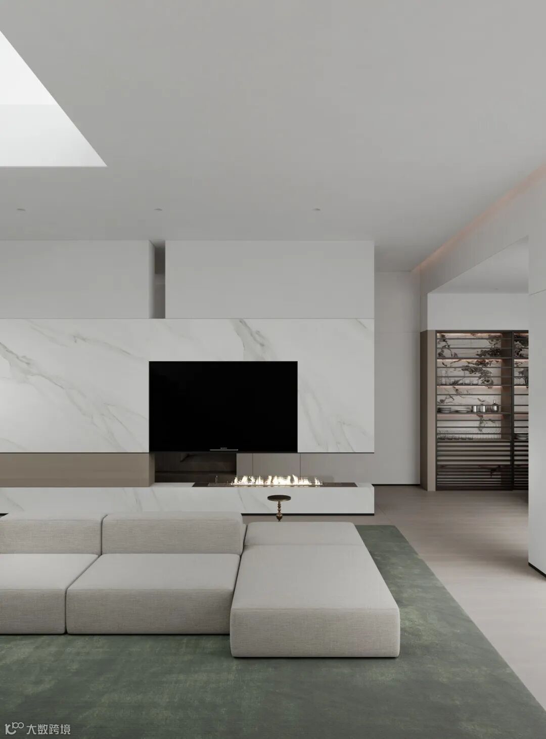 本案依然为梦太初为设计师葛赫完成表现的作品,一处大平层项目,大面积乳白色,配以少量浅色原木,定制化家具,和谐大气,而富有变化。