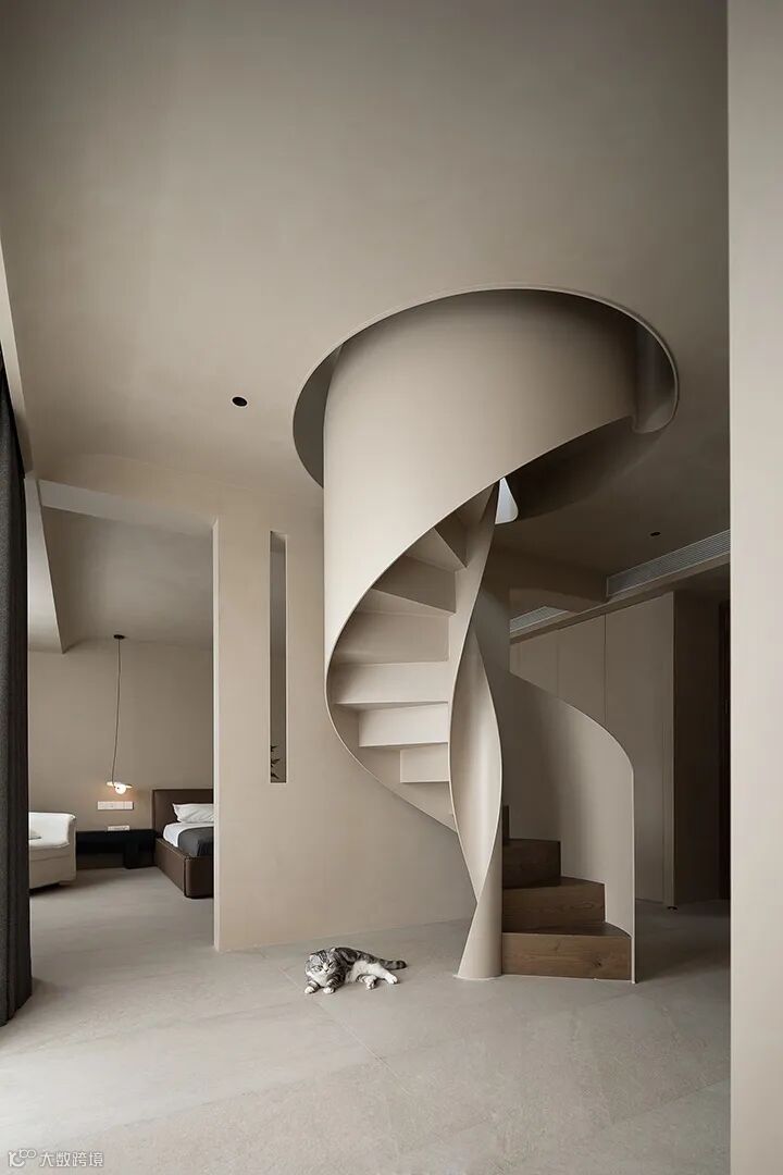 设计师柴建最新作品,某复式住宅,原木与浅色墙面的穿插,赋予空间序列感与节奏美,极简的楼梯与光影律动,淡雅而灵动。