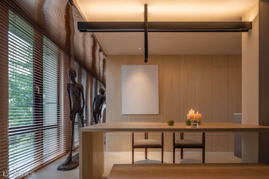 2、设置优先级,在同一个空间里,找到空间中抓人眼球的视觉焦点,可能同时会有多个需要优先考虑的照明目标,这些目标需要考虑作业照明和重点照明,比如图中客厅中的木墩处为重点照明,玄关处为作业照明;