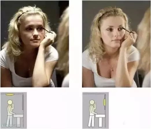 比如卫生间洗漱台上的灯光,因为有镜子的存在,所以这一块一般是做重点照明的,但往往会存在一个问题,如图: