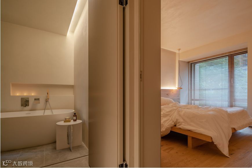 比如图中卧室利用灯带间接照亮了天花和墙壁,使空间看上去更加安静和宽敞;