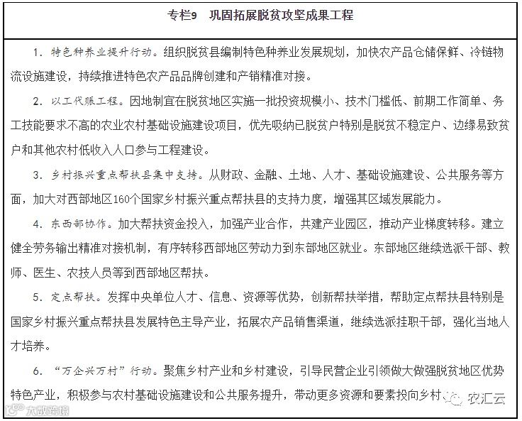 推动脱贫地区特色产业可持续发展。实施脱贫地区特色种养业提升行动,完善全产业链支持措施,加强产业发展设施条件建设。建立产业技术顾问制度,组建专家队伍长期跟踪帮扶。拓展脱贫地区农产品销售渠道,完善线上线下销售渠道体系,支持销售企业、电商、批发市场与脱贫地区精准对接。深化拓展消费帮扶。
