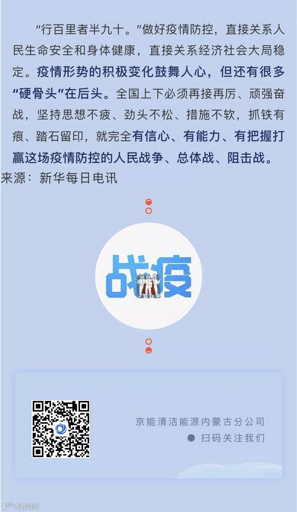 京能清洁能源内蒙古分公司于2019年8月22日注册成立啦,掀起了融合改革的新篇章。初心不忘,步履不停,站在新的历史起点,挑战才刚刚开始。小伙伴们,让我们携手并进,乘风破浪,共同创造新辉煌!