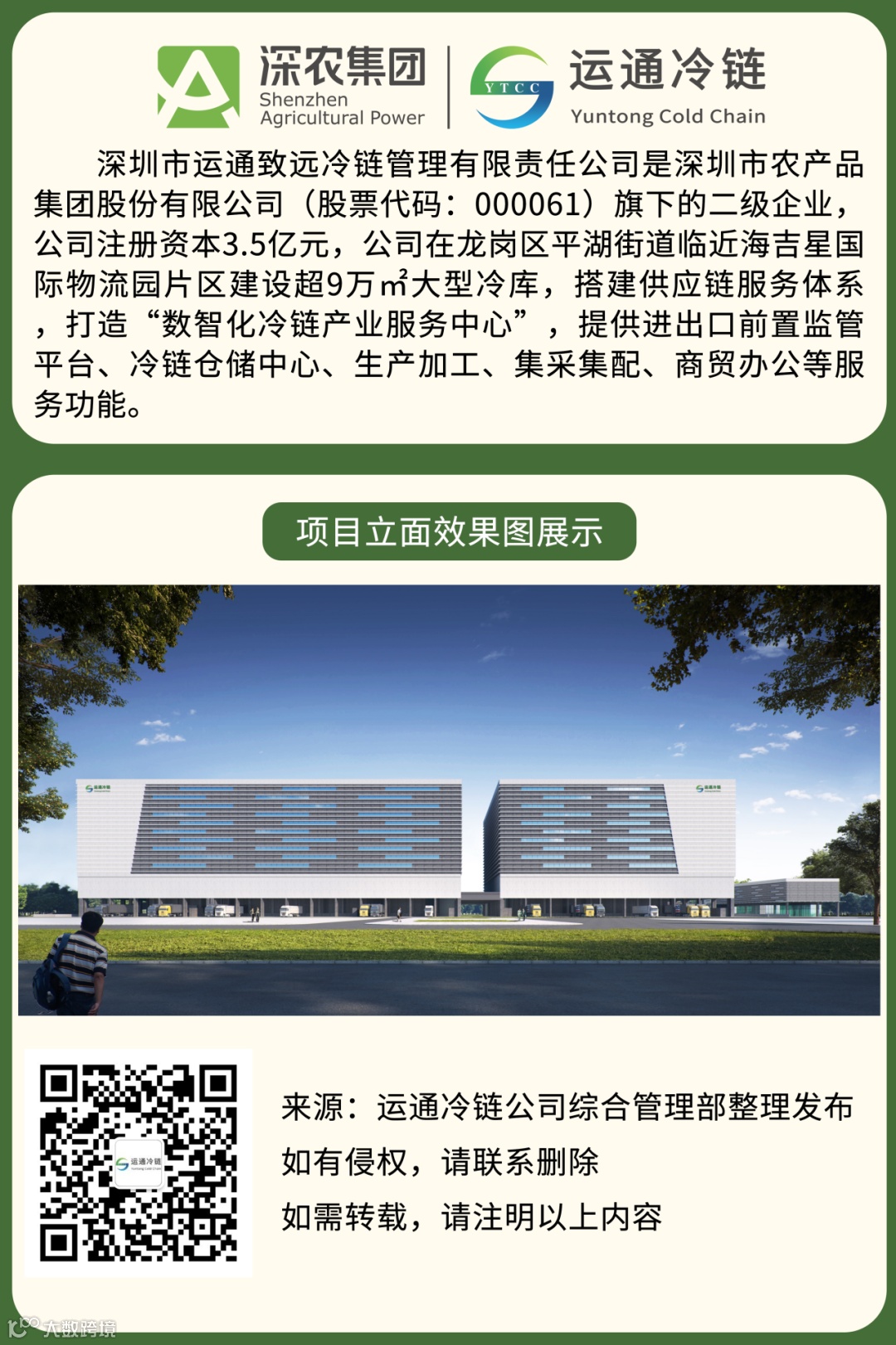 此次战略框架合作协议签约仪式成功举行,推动运通冷链公司与深粮冷链公司全面协同融合发展。接下来,双方将在具体业务中强化融合实效,携手打造冷链品牌。