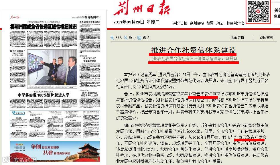 《荆州日报》推进合作社资信体系建设