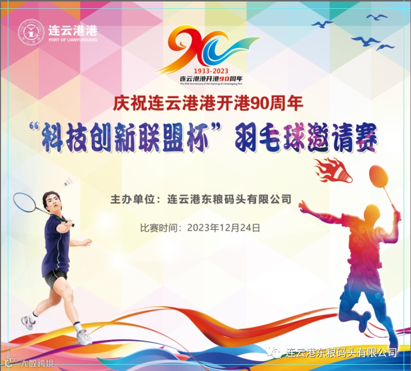 导读:点击上方蓝字关注我们吧12月24日,庆祝连云港港开港90周年“科技创新联盟杯”羽毛球邀请赛圆满落幕,来自港口