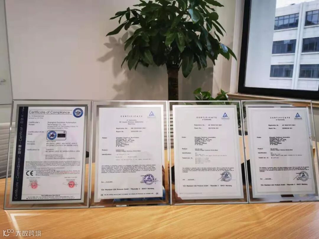 【工业用途AGV产品全指令CE】CE-EMC电磁兼容指令、CE-RED无线模块射频指令、CE-MD机械安全指令、CE-EN60034电机安全指令、CE-RoHS的环保指令以及CB-IEC62619锂电池组认证。
