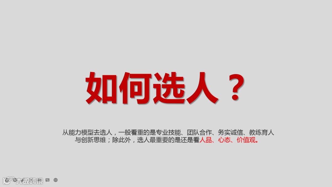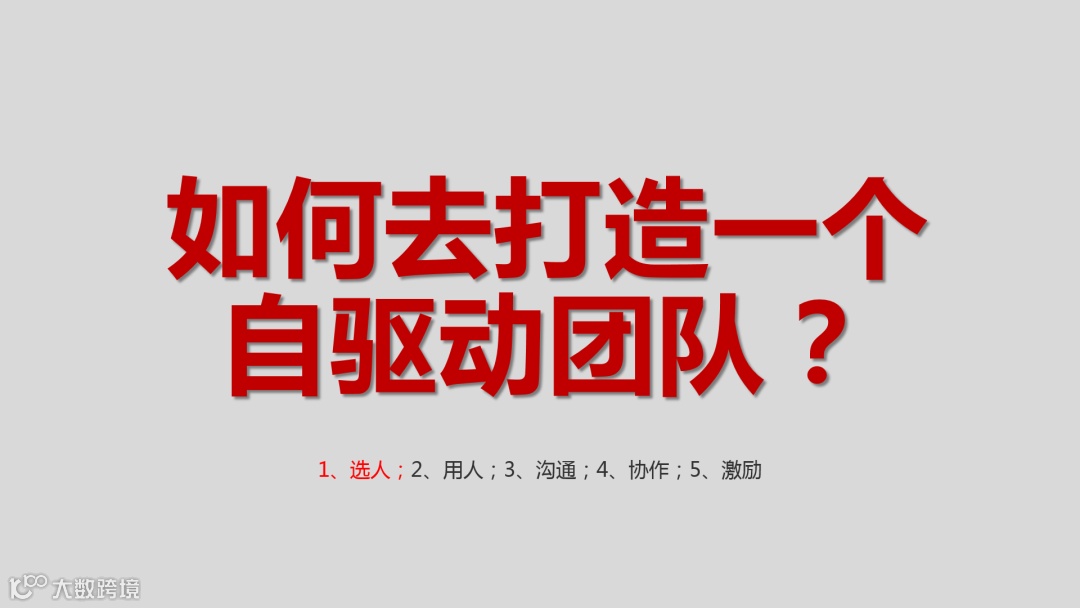 佳佳姐为此提出五个基本要素“选人、用人、沟通、协作、激励”
